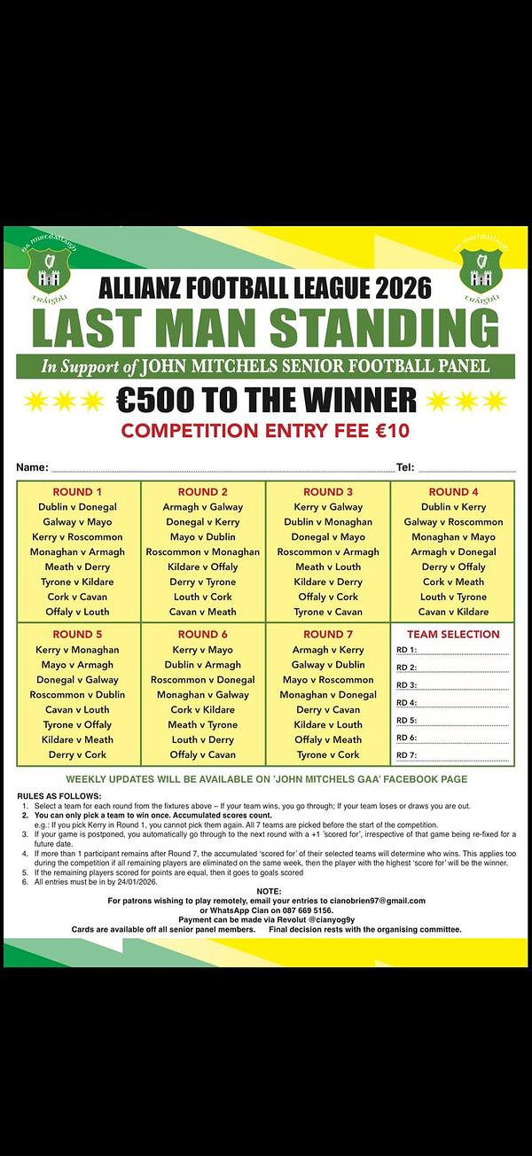π’ π Last Man Standing fundraiser in support of John Mitchels Senior Football Panel ππ’